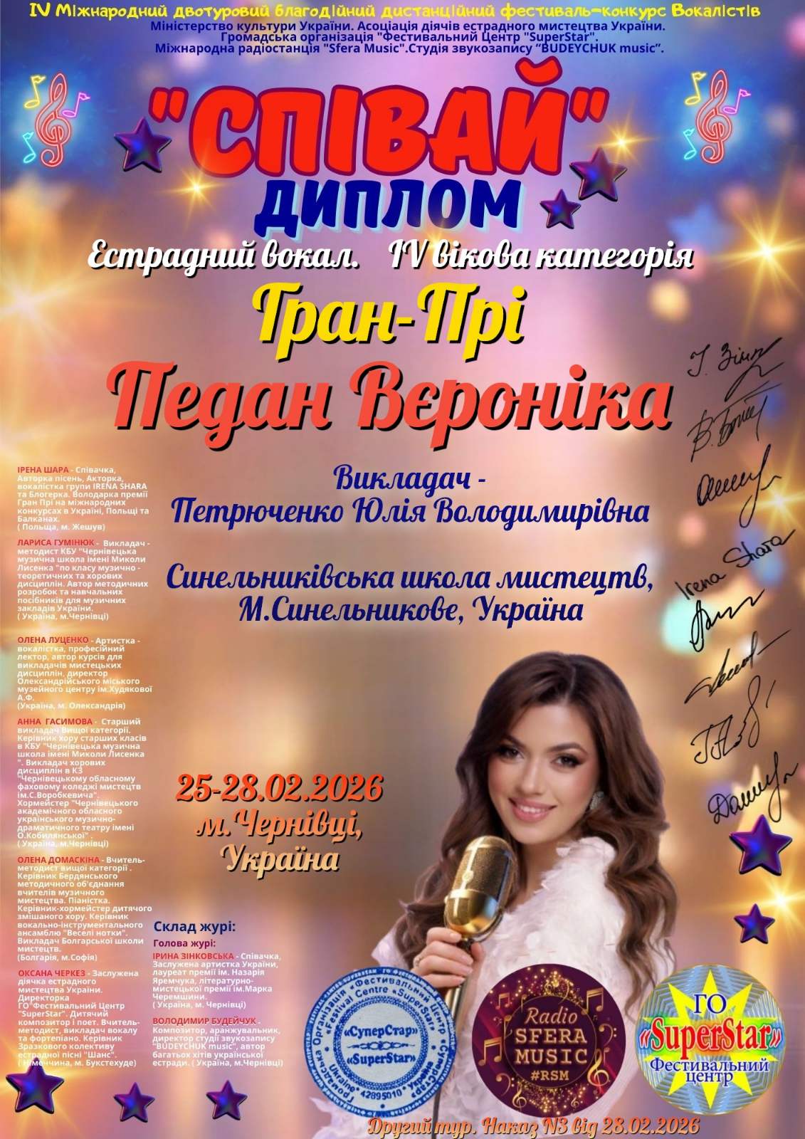 Педан Вєроніка отримала Гран-Прі у номінації естрадний вокал (викладач Юлія Петрюченко).