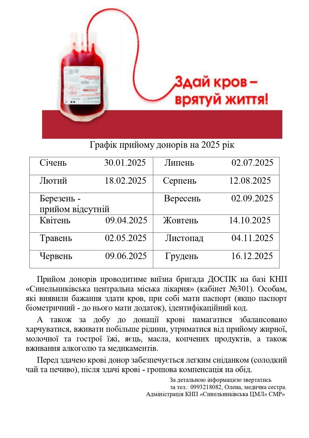 У нас в Синельниківській міській територіальній громаді спостерігається зменшення кількості донорів крові та компонентів крові.