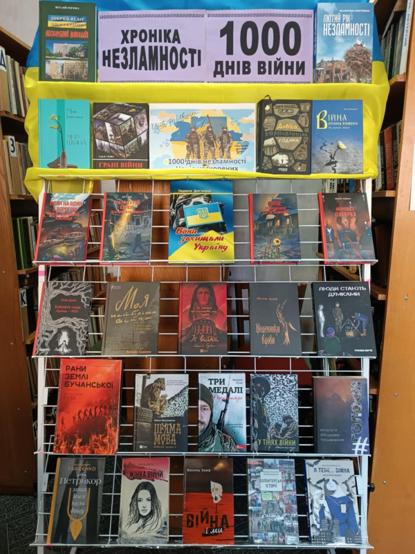 У міській дитячій бібліотеці організовано тематичну виставку: «Хроніка незламності. 1000 днів війни». З книгами можуть ознайомитися всі бажаючі.