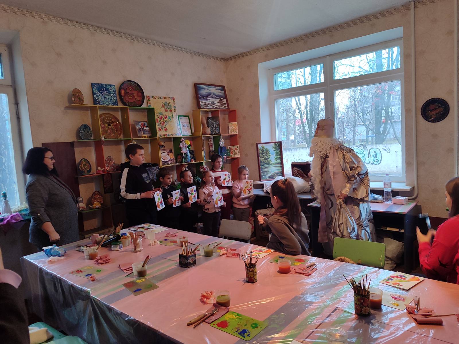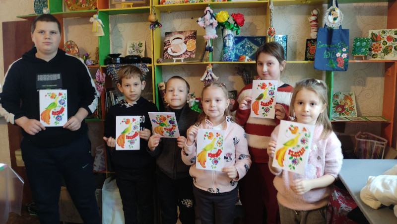 За вікном прохолодно, а в кабінеті тепло, затишно та цікаво. Пахне фарбами. Чути веселий гомін дітлахів. Напередодні Дня Святого Миколая вони із задоволенням та цікавістю попрацювали – створили святкову листівку у стилі петриківського розпису.