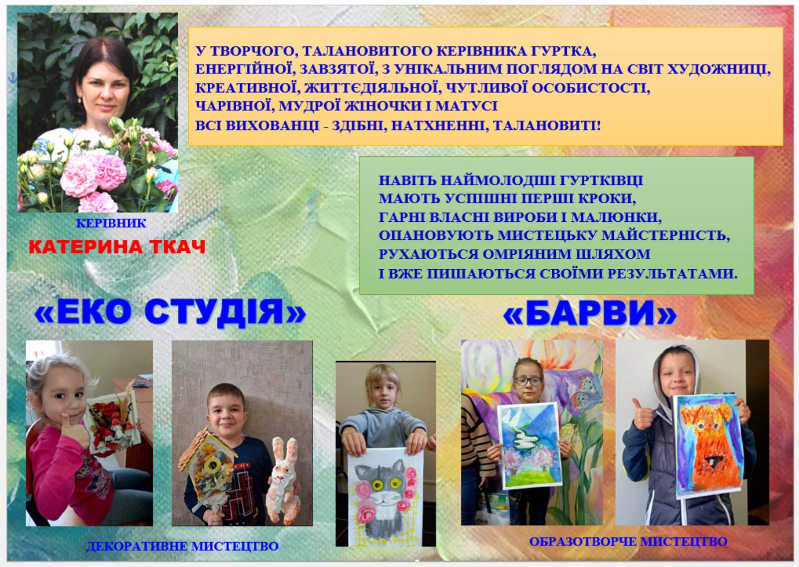 Перший рік в Центрі дитячої та юнацької творчості працюють гуртки «Барви» та «Еко студія» під керівництвом Ткач Катерини, а вже мають неабиякі результати.