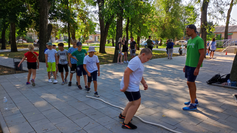 А потім відбувся підготовчий етап – розминки за локаціями: «Олімпійське лелеченя» - для найменших, для вихованців міського Інклюзивно- ресурсного центру, футболістів, дзюдоїстів, легкоатлетів та боксерів.