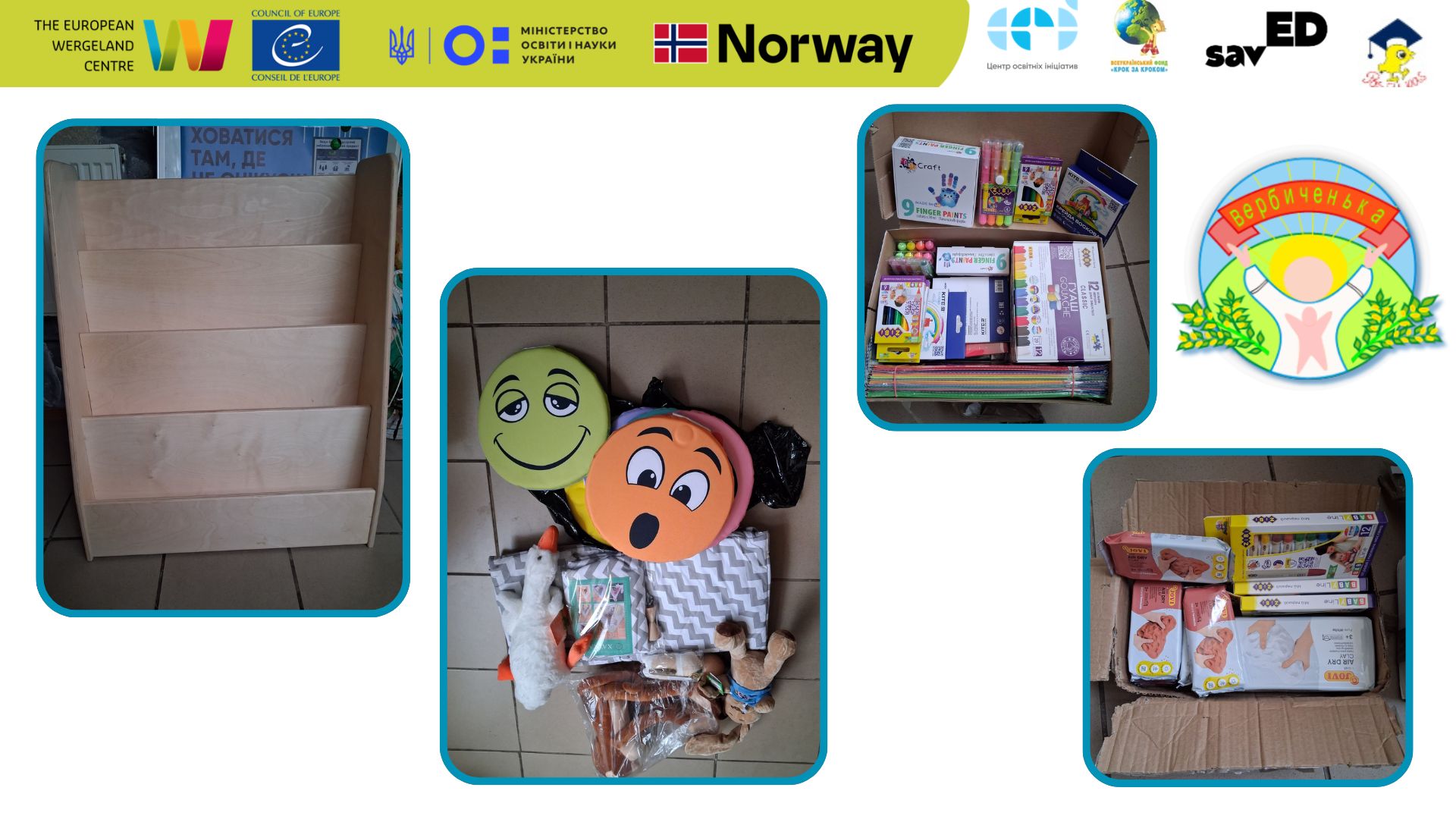 На знак підтримки інноваційних міні-проєктів, колективи закладів отримали від Програми методичні подарунки, які допоможуть облаштувати простір для розвитку громадянських компетентностей. Це: ігровий намет, набір іграшок, дитячих поличок, книг та килимків для сидіння, а також необхідні канцтовари та матеріали для творчості.