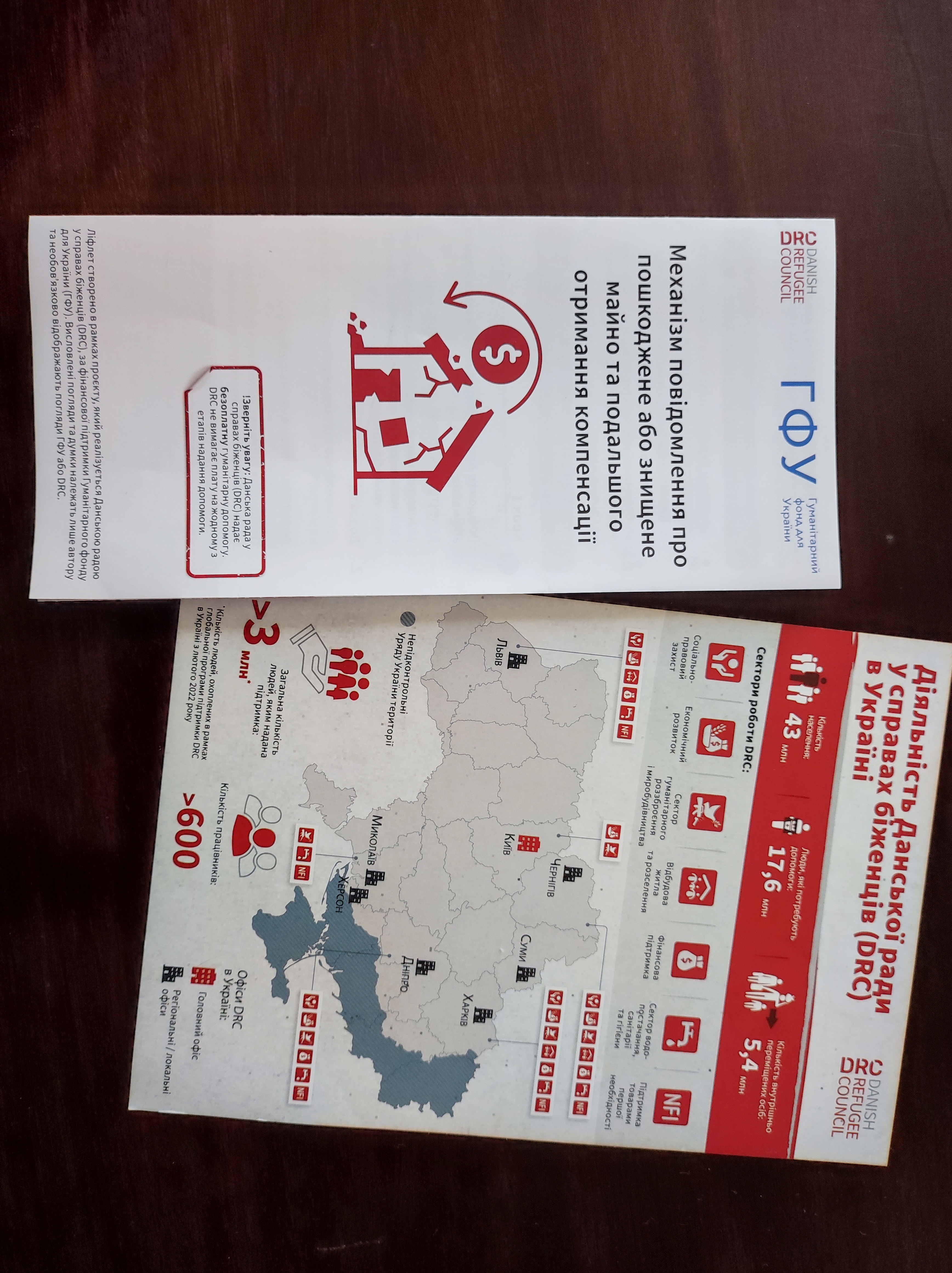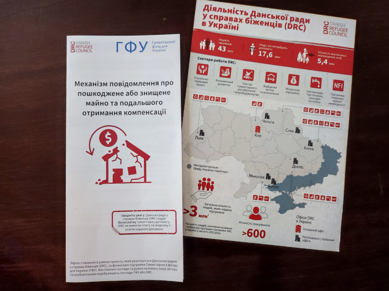 Роздали буклети з інформацією, як отримати компенсацію в разі пошкодження чи знищення майна.