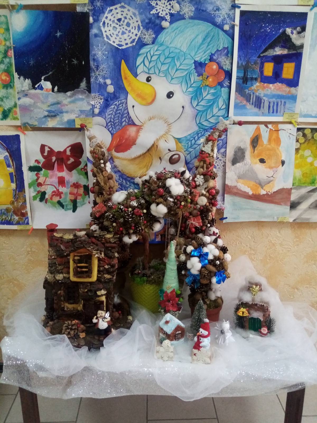 Протягом місяця дітей знайомили з українськими традиціями святкування Різдва та Нового року. Всю свою майстерність вони вклали у власноручні вироби, малюнки. Виготовили різдвяні будиночки, снігові фігури, святкові сувеніри, ялинкові іграшки, які стали складовими композиції. Малюнки представили на виставці.