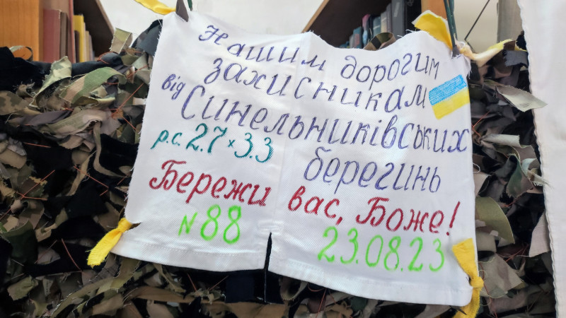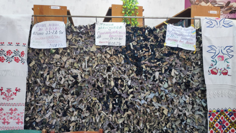 Тетяна Литвин ознайомила з роботою команди волонтерів «Синельниківські берегині». З початку війни ними виготовлено 1764 кв.м маскувальних сіток, старанно зав’язано мільйони вузликів. Масксітки передають військовим або їх рідним безкоштовно, аби зберегти життя наших оборонців, техніку.