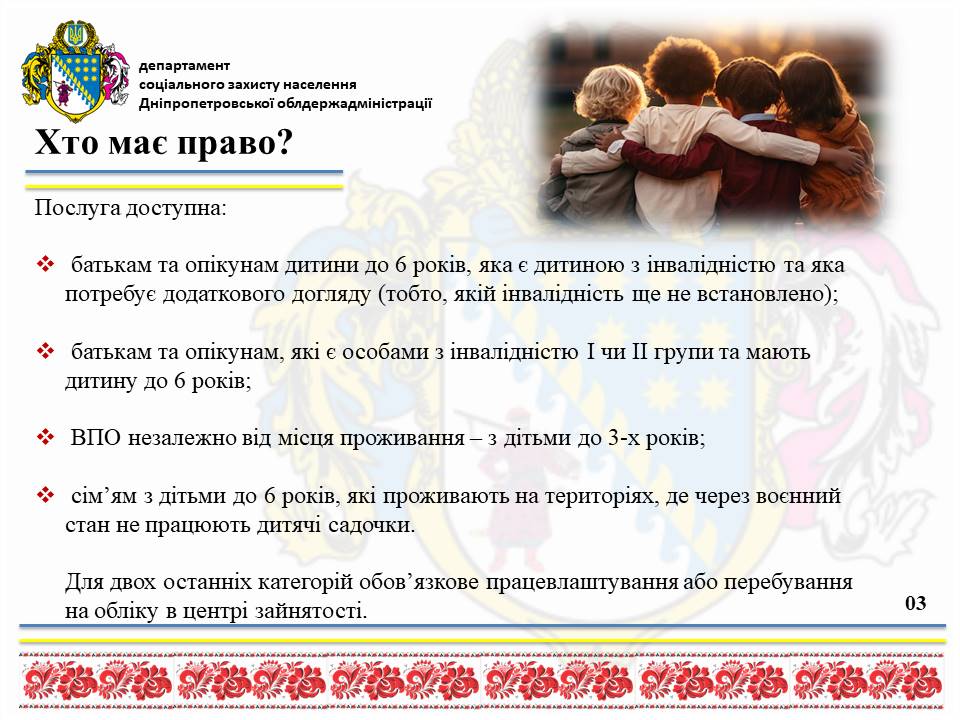 Щодо відшкодування вартості послуги з догляду за дитиною "муніципальна няня"