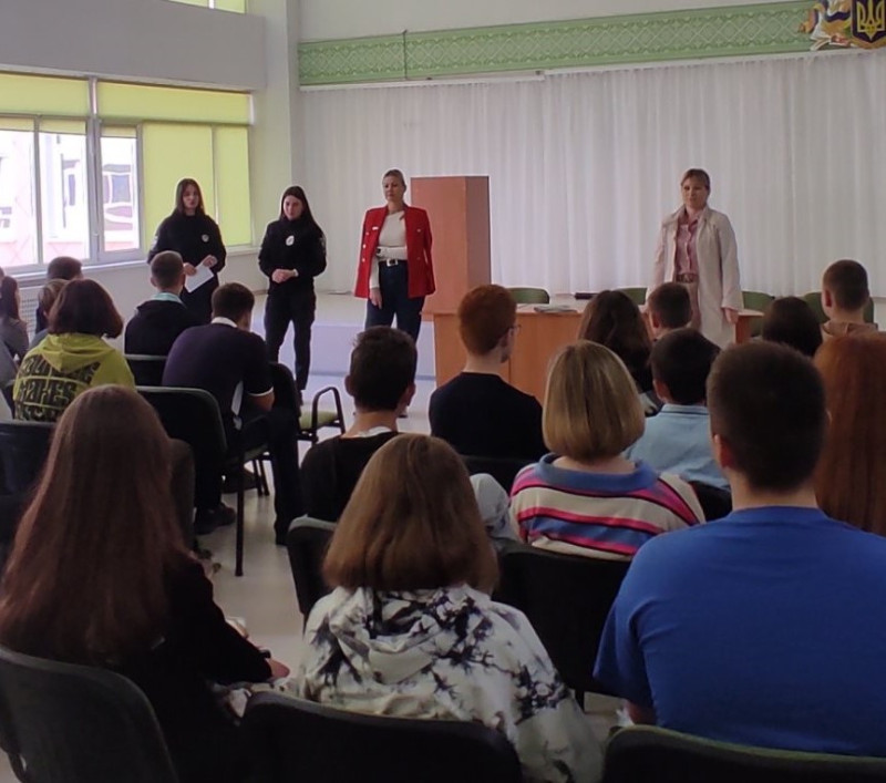 Лекцію на тему: «Профілактика вчинення дітьми злочинів та правопорушень в умовах воєнного часу» провели сьогодні у міському ліцеї №7 з учнями 8 та 9 класів.