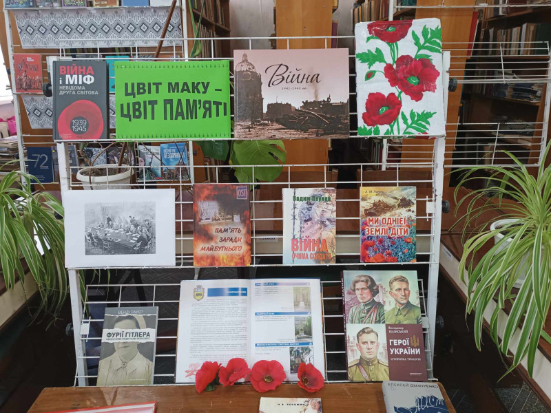 До цього дня в бібліотеці читачам була запропонована виставка-спогад: "Цвіт маку - цвіт пам'яті!". Також для відвідувачів різних вікових категорій були проведені диспут-спілкування "Українські письменники про Другу світову війну" та інформаційна година пам'яті "Війні немає забуття".