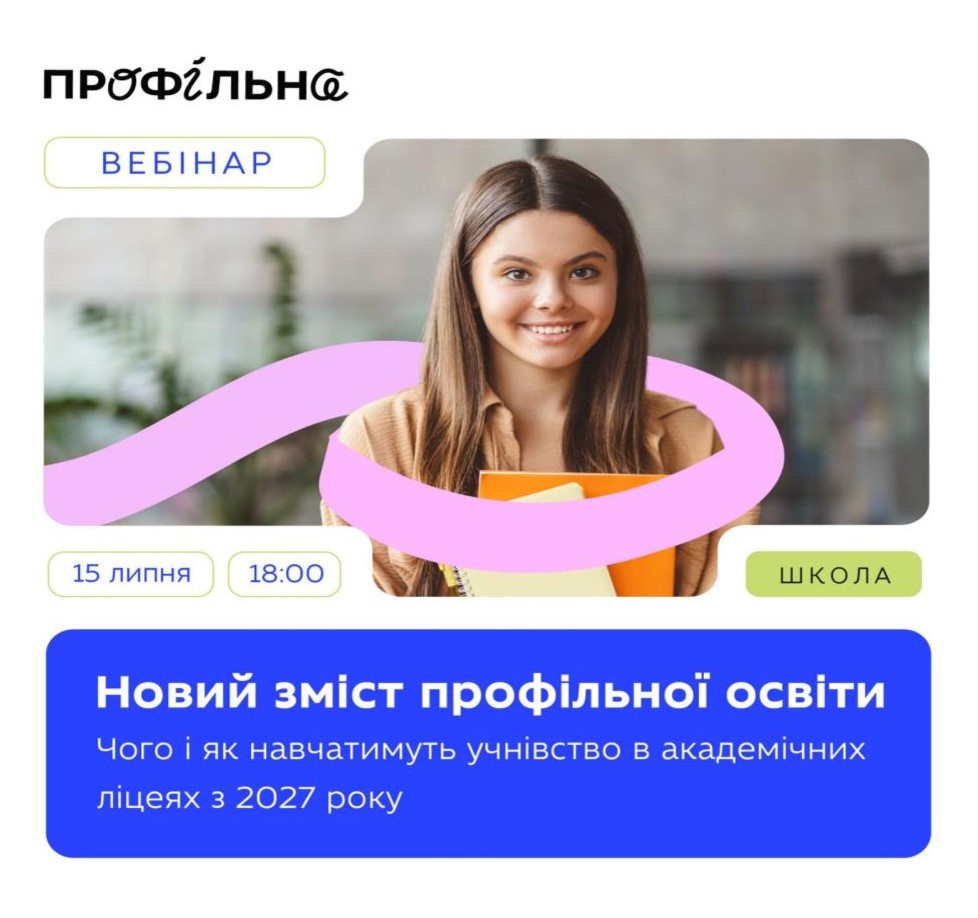До уваги батьків! Міністерство освіти і науки України запрошує батьків майбутніх старшокласників на вебінар «Новий зміст профільної освіти: чого і як навчатимуть учнівство в академічних ліцеях з 2027 року».Коли: 15 липня, 18:00.Як долучитися: зареєструватися за посиланням і дочекатися листа-підтв…