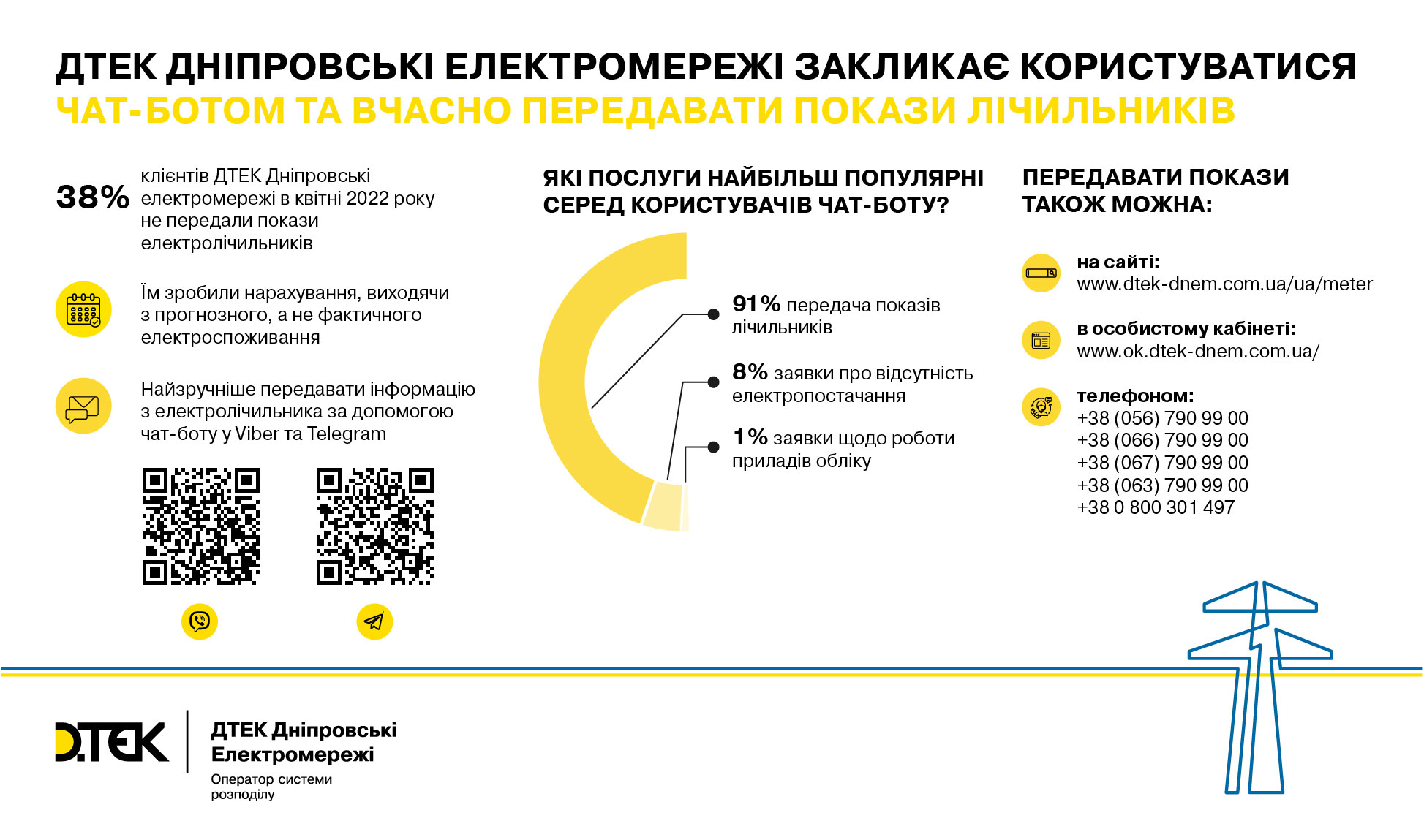 Кінець місяця – час передавати покази електролічильника. Зробити це в найзручніший спосіб можна через чат-бот в ДТЕК Дніпровські електромережі у Viber та Telegram. Головна перевага сервісу — цілодобове обслуговування клієнтів та можливість передавати та отримувати інформацію у зручному форматі без…