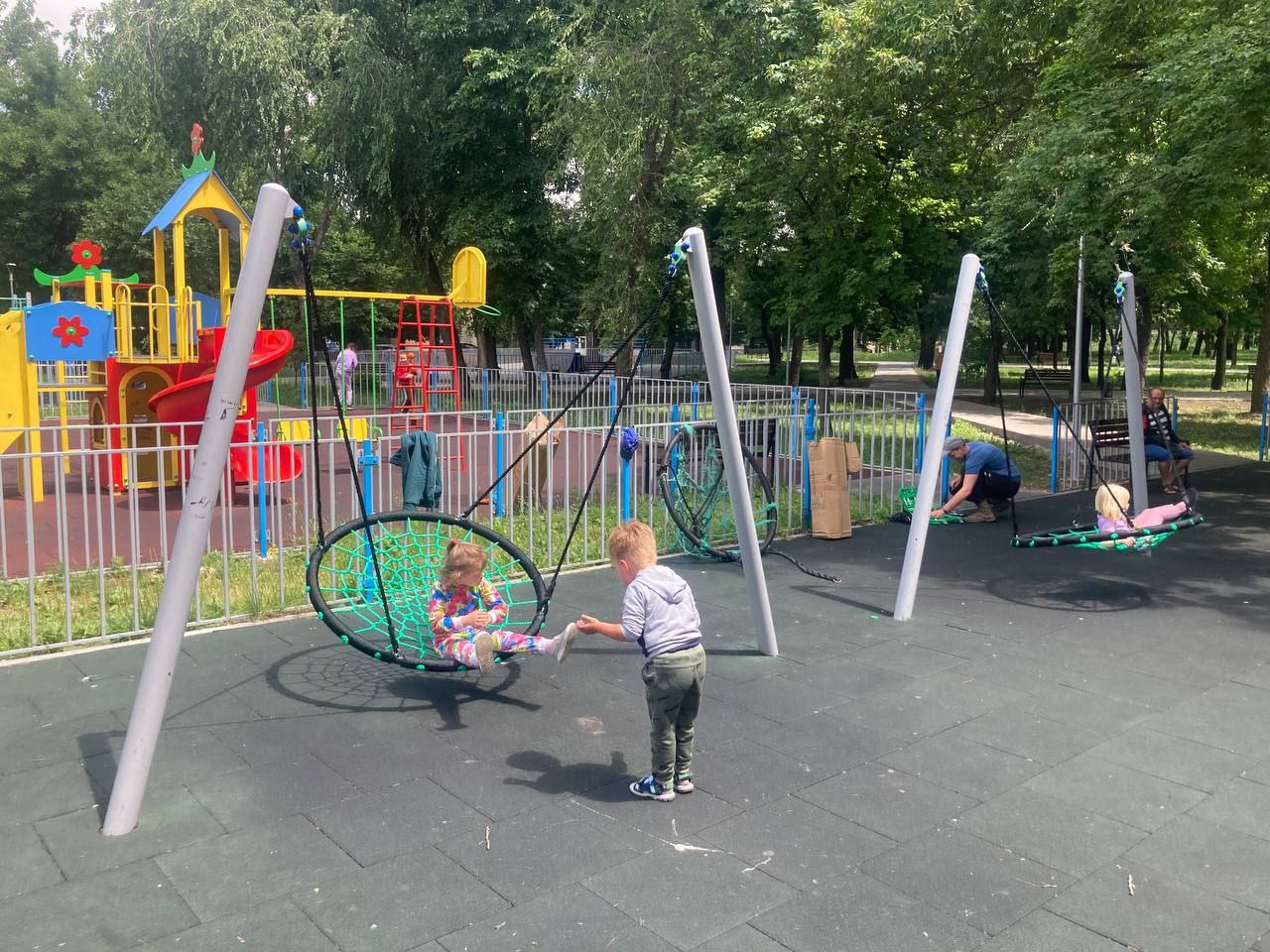 У м. Синельникове розпочато відновлення пошкоджених елементів конструкцій дитячих та спортивних майданчиків. На даний час замінено сітки на гойдалках для дітей. Також планується виконати заміну непрацюючих підвісних елементів гойдалок, а також дерев'яних складових обладнання на майданчиках.