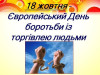 Щорічно 18 жовтня відзначається Європейський день боротьби з торгівлею людьми, мета якого – висвітлення проблеми торгівлі людьми, необхідність об’єднання зусиль для протидії цьому явищу, переслідування злочинців, надання допомоги постраждалим особам. Відповідно до Закону України «Про протидію торгі…
